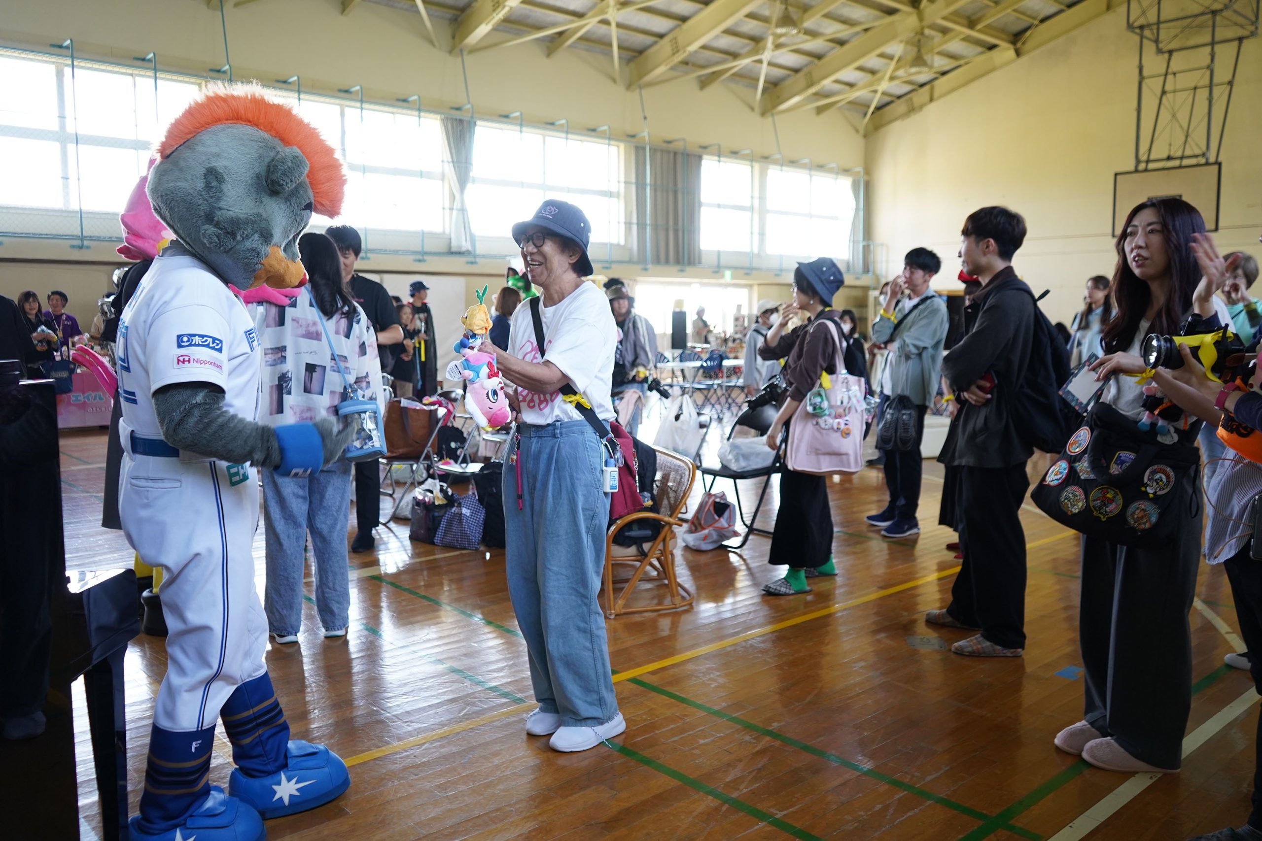 こんばんは。既視感のあるジャンジャンビーだ。ご当地キャラでも企業キャラでもないってミステリアス。雨竜で会ったりきゅーたくんも来てたのか。山だるまさんけっこう前に見たことあるけど今も活動されてたのか。エイルちゃんオシャレしてきてる。僕は耳つぼジュエリーが気になる。B・Bにもジュエリーを。