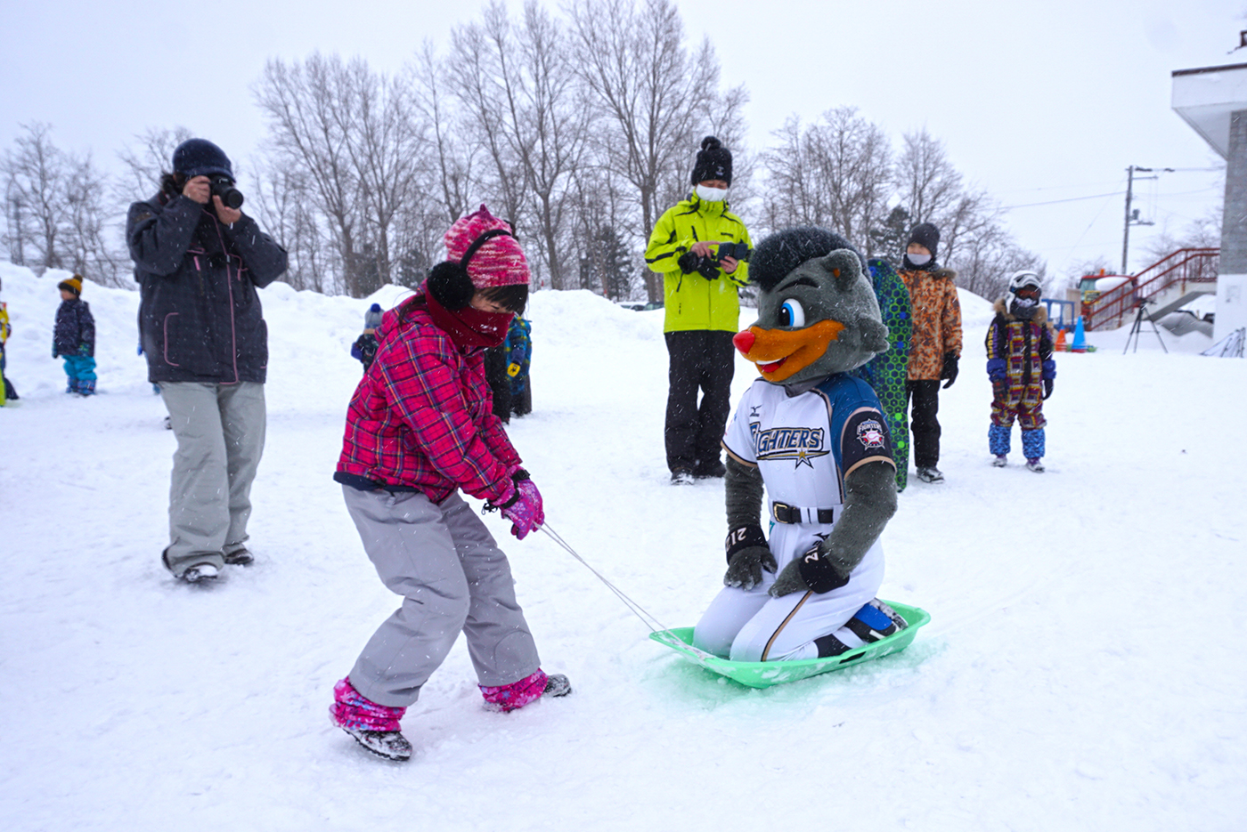 私も一緒に遊んでスノーラフティングに乗りたい。